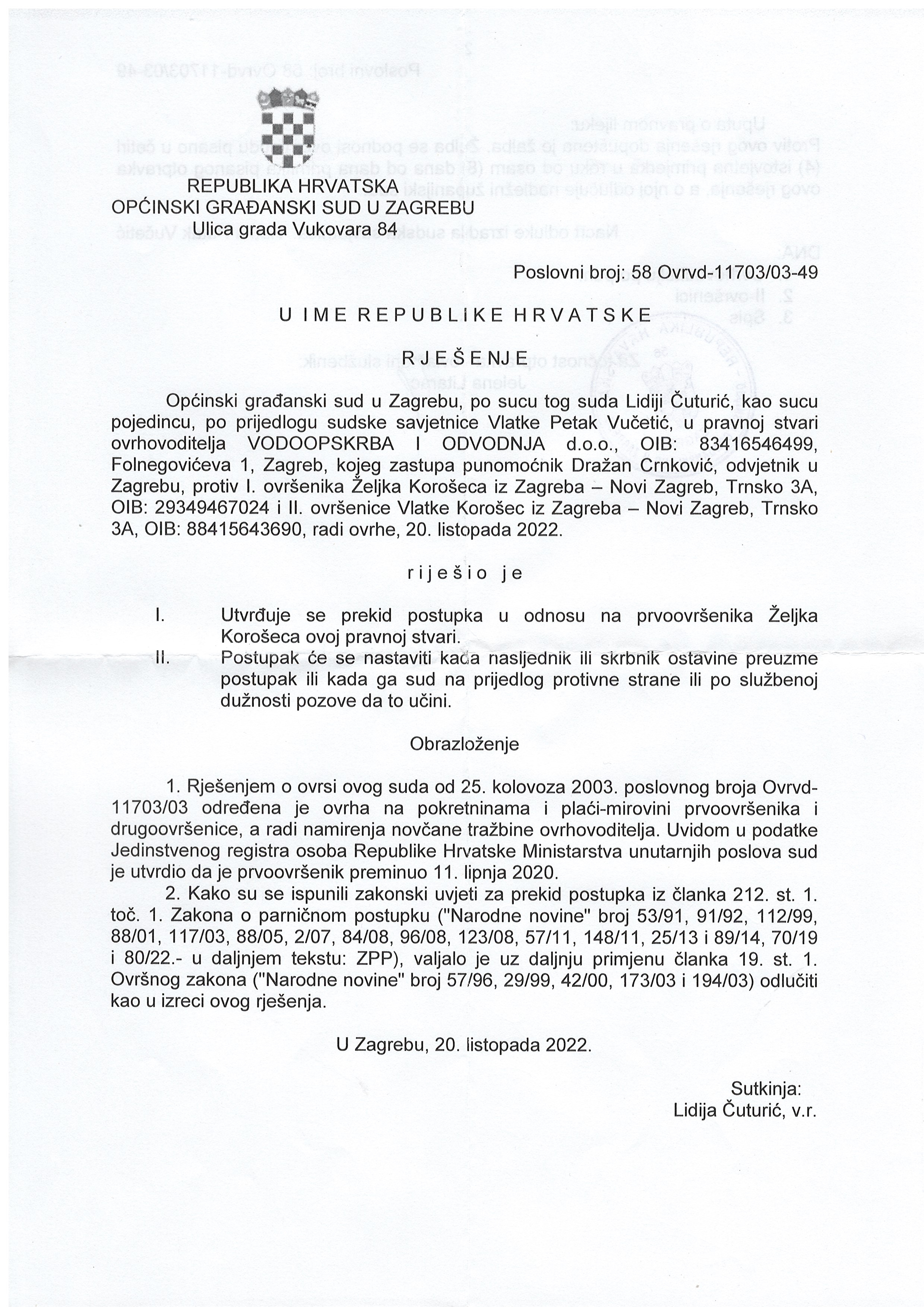 Ovrvd-8250/2003 Općinski građanski sud u Zagrebu